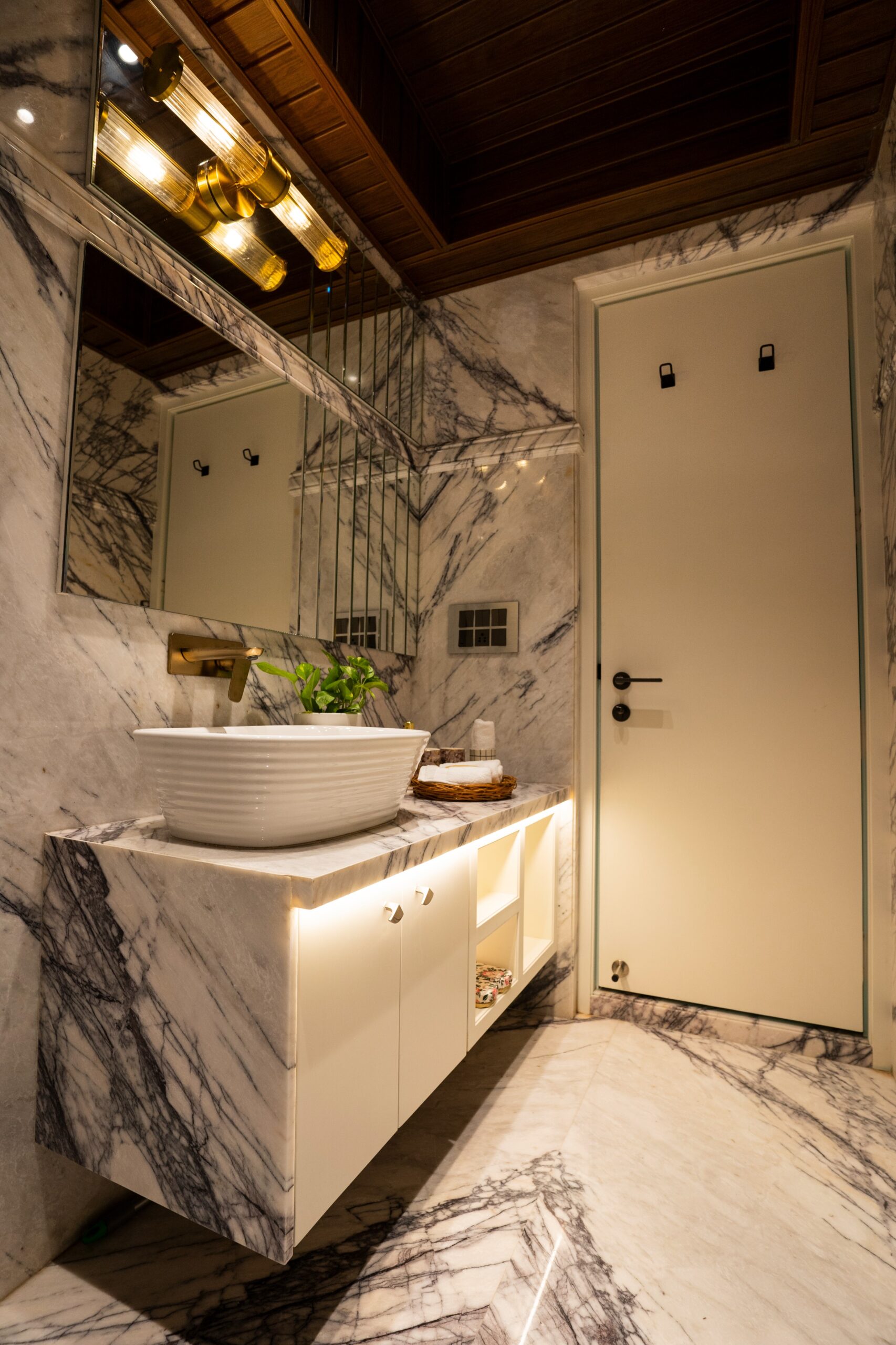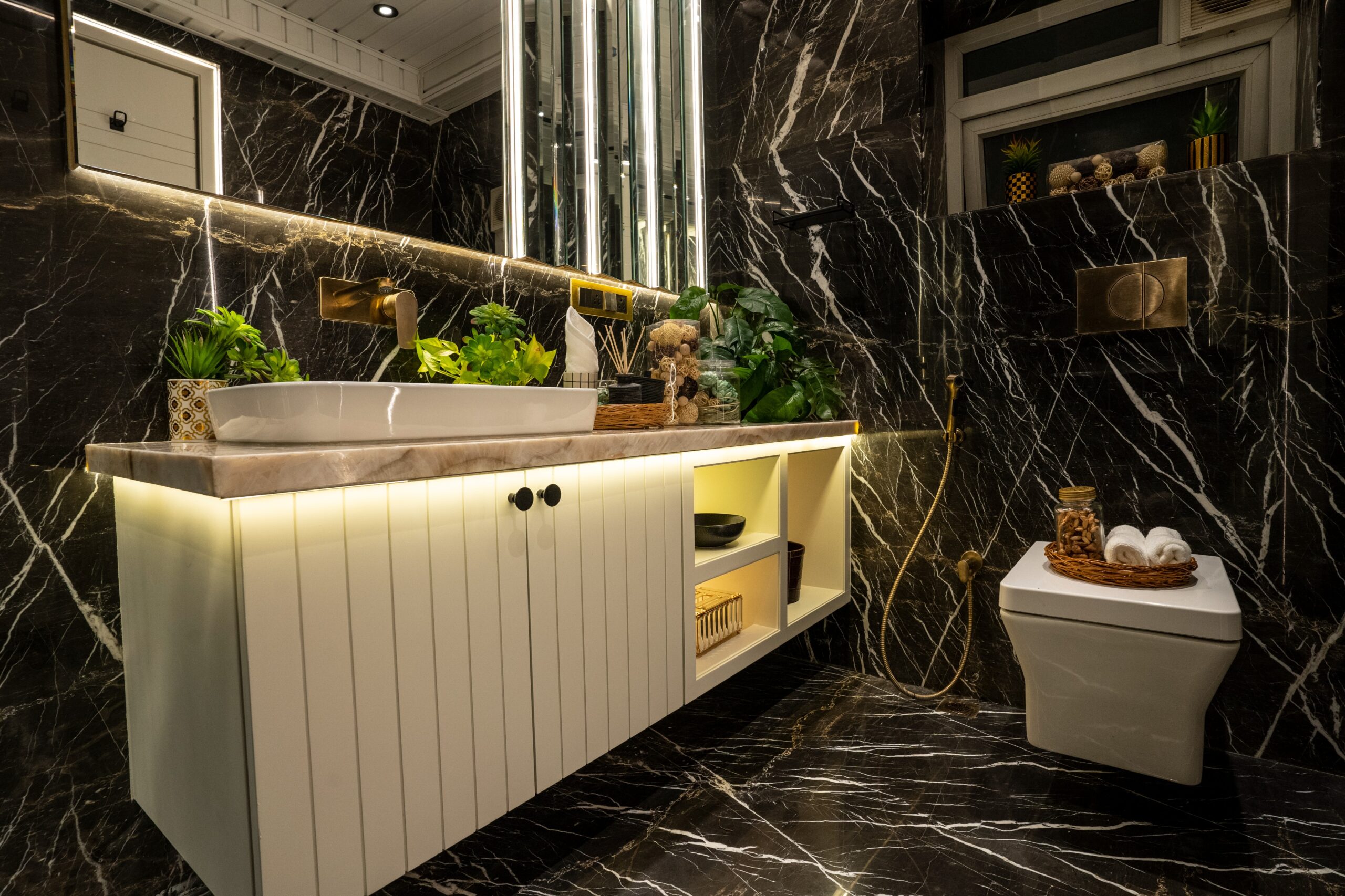 Our professional interior designers craft bathroom designs that often include neutral or cool color palettes, with accent colors or plants to enhance tranquility. Personalized touches, such as scented candles, decorative towels, and stylish hardware, add warmth and character to the space. Durable and moisture-resistant materials are chosen, with options like ceramic or porcelain tiles on floors and walls, which are easy to clean and add a luxurious feel.