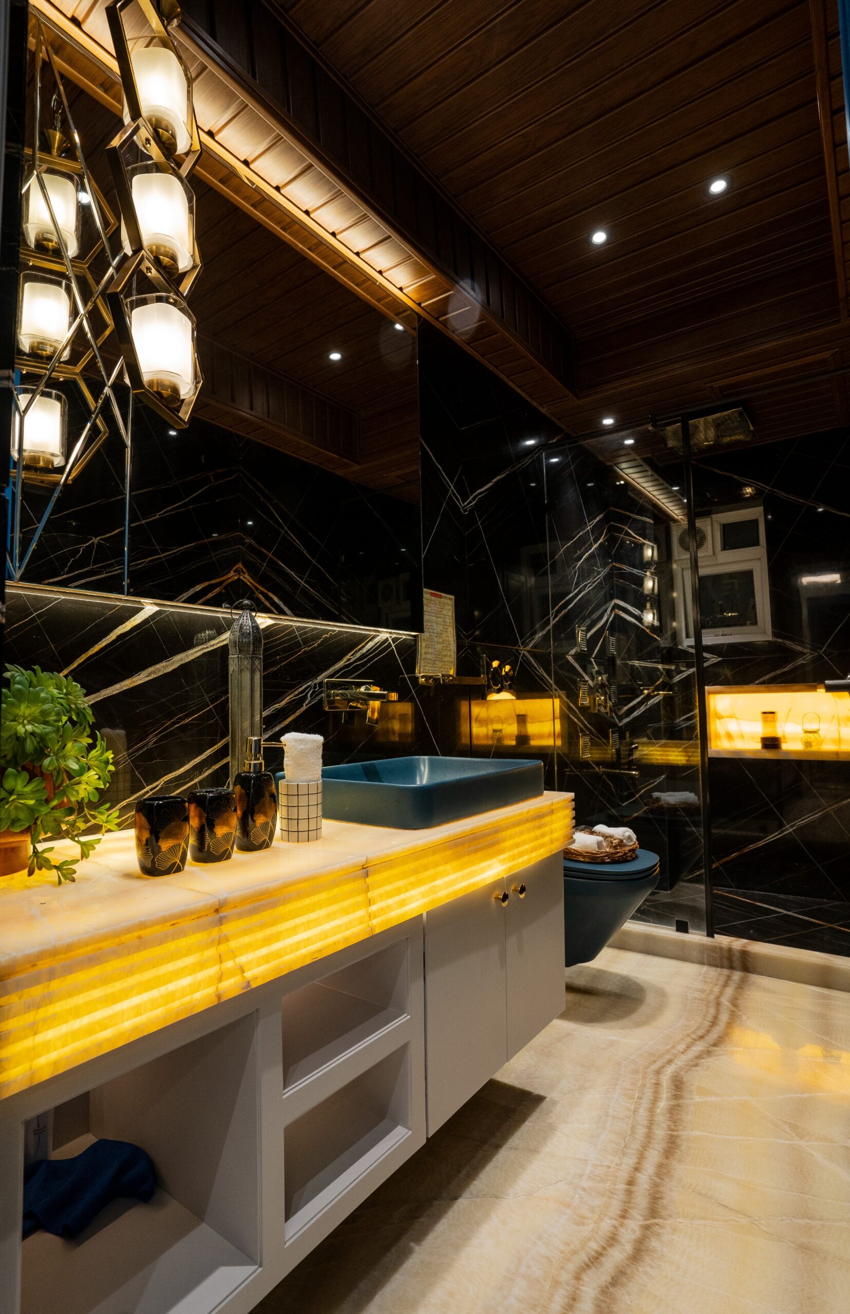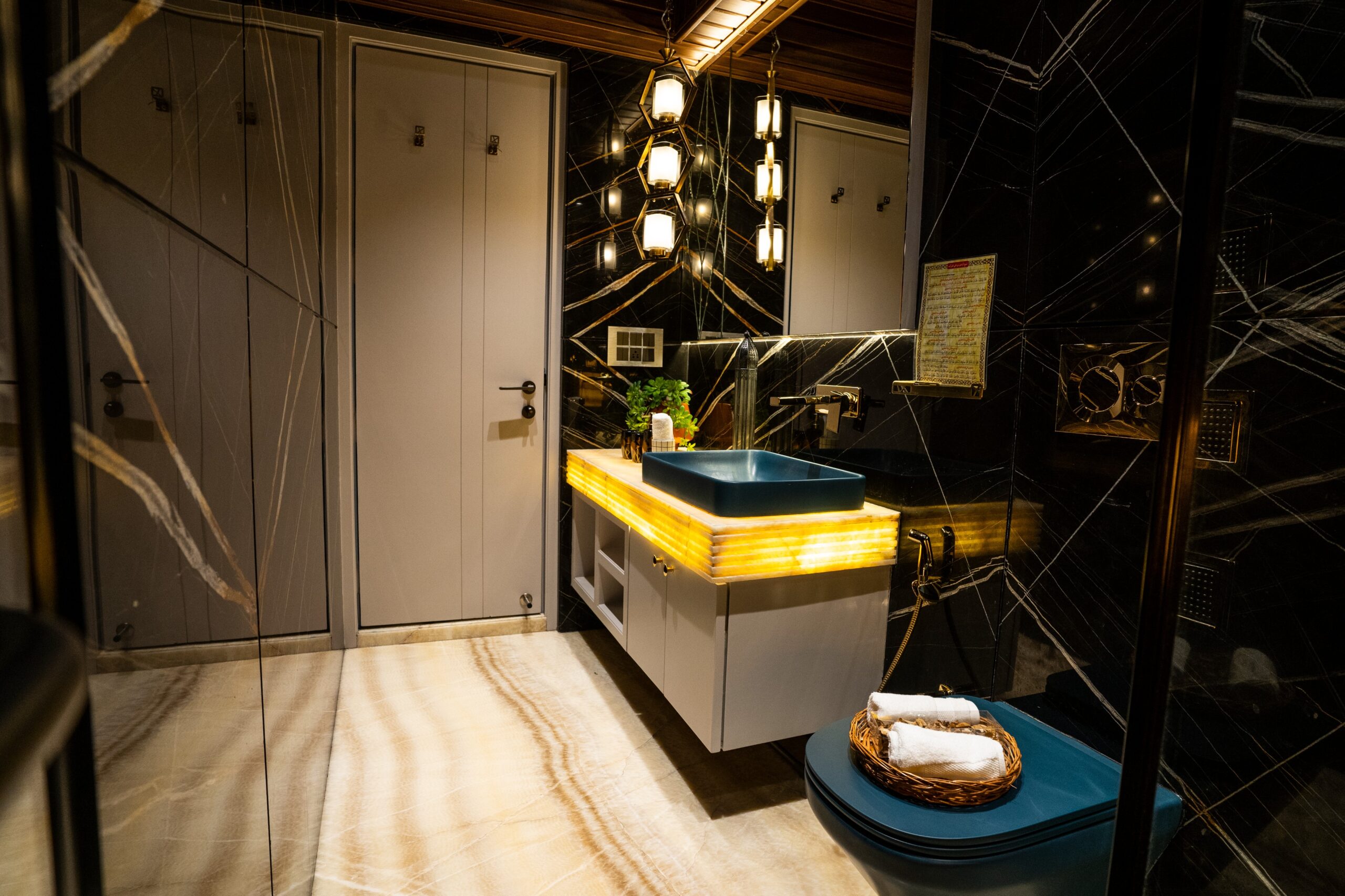 Bathroom interior design transforms this functional space into a place of relaxation and rejuvenation. A well-designed bathroom prioritizes hygiene, functionality, and aesthetic harmony. Fixtures, such as sinks, toilets, and showers, are chosen to maximize space while maintaining ease of use. Bathroom designs often include neutral or cool color palettes, with accent colors or plants to enhance tranquility. Personalized touches, such as scented candles, decorative towels, and stylish hardware, add warmth and character to the space.