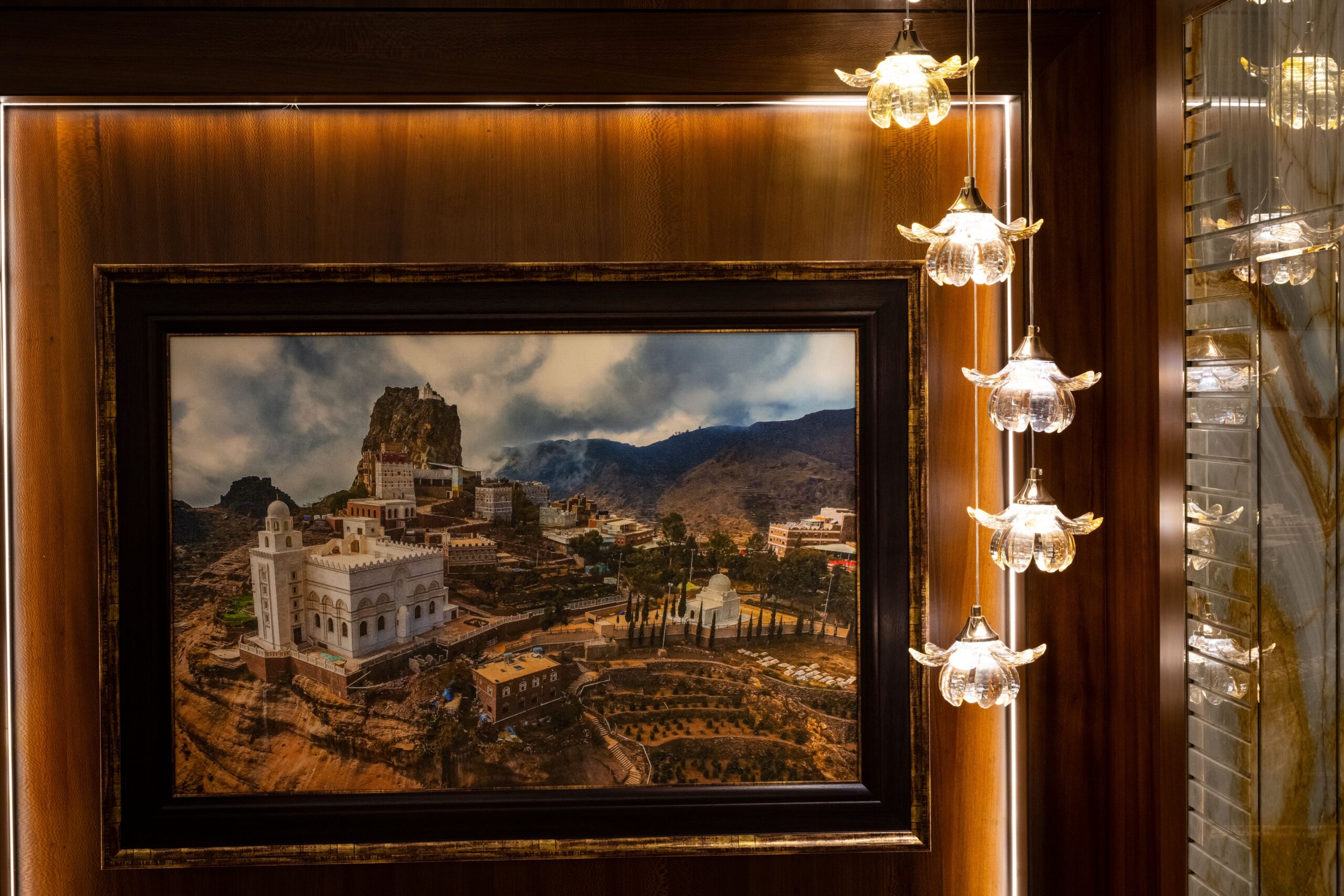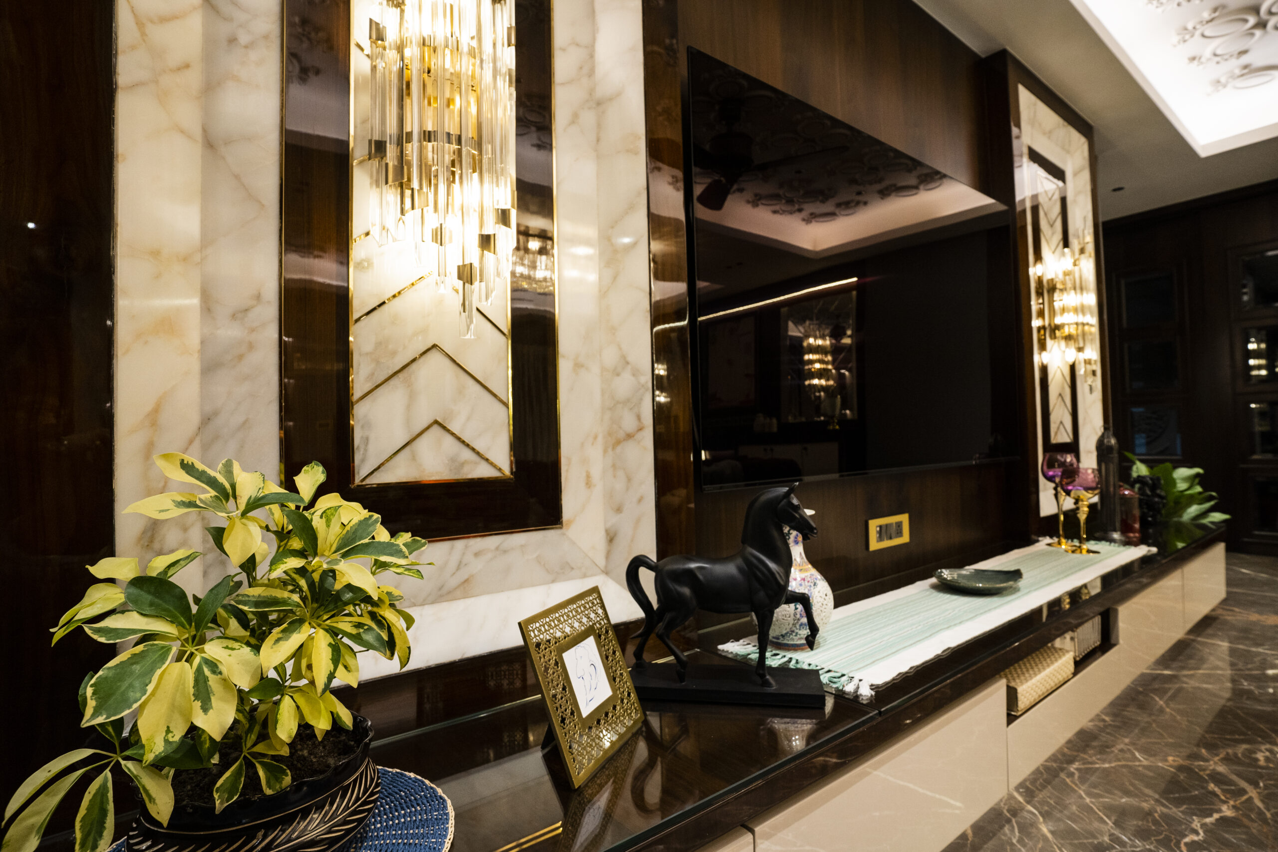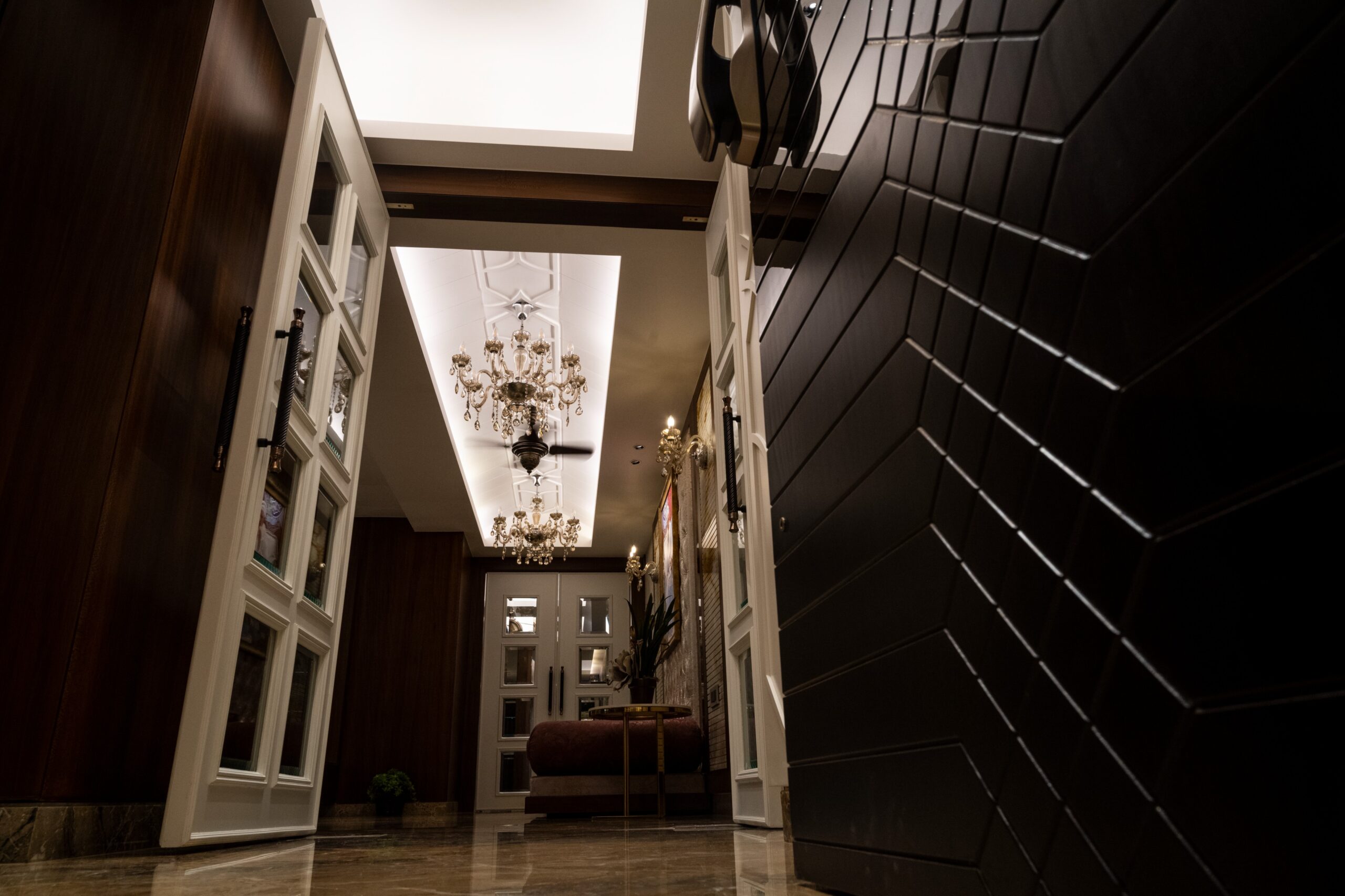 Chandeliers, statement fixtures, and layered lighting.